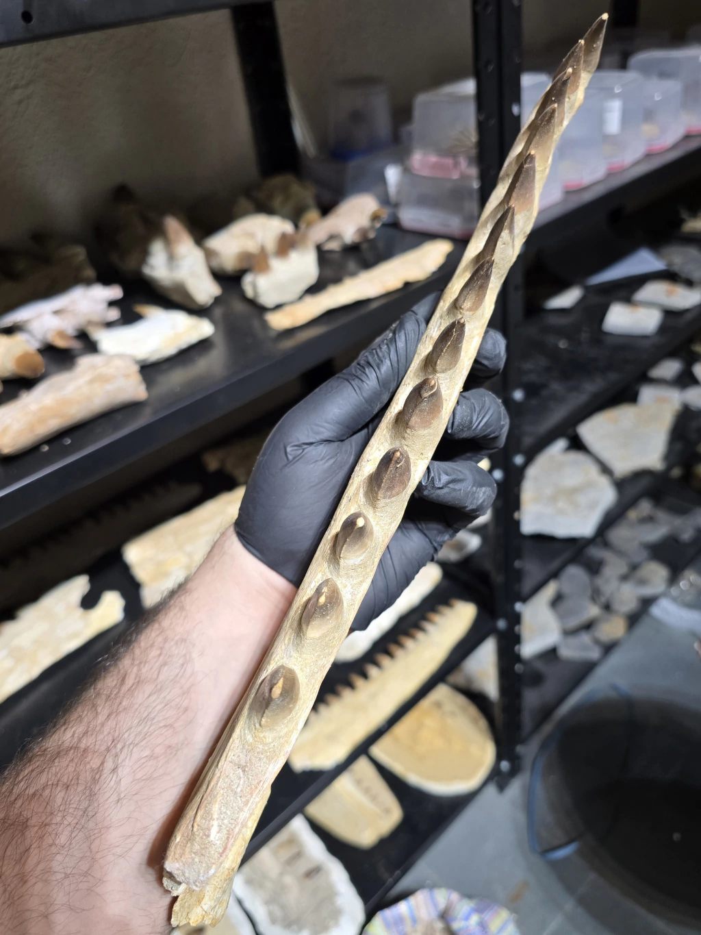 Está mandíbula fossilizada, proveniente de Khouribga, Marrocos, remonta ao período em que os mosassauros dominavam os oceanos pré-históricos.